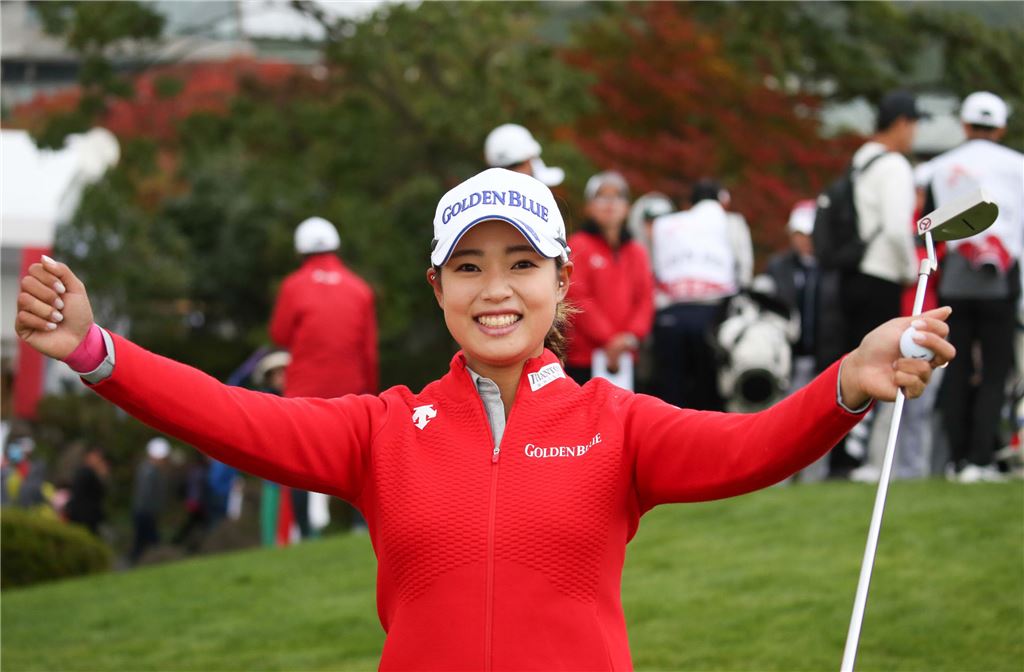 김혜선2가 서울경제레이디스 최종일 우승이 확정되는 순간 환호하고 있다. 사진=KLPGA