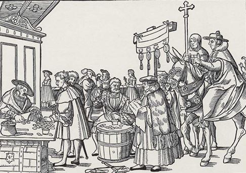 면죄부 판매 모습을 묘사한 목판화(사진=위키피디아)
