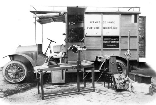 X선 사진을 찍을 수 있는 장치를 내장했던 차량인 '리틀퀴리' 모습. 1차 대전 당시 퀴리 부인은 딸과 함께 이 차를 몰고 전선을 누비벼 100만명 이상의 부상병들을 진단하러 다녔다.(사진=sierrawyllie.weebly.com)
