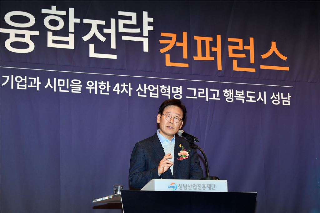 이재명 성남시장이 산업융합전략컨퍼런스에 참석해 기조강연을 하고 있다.