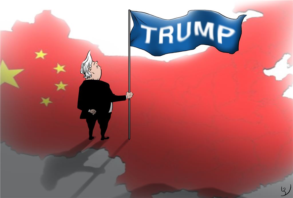트럼프 대통령이 중국을 방문해 시진핑 국가 주석으로부터 '황제예우'를 받아 화제가 되고 있는 가운데, 올해 초 그가 자신의 이름을 중국에서 되찾기 위해 10년 간 벌여온 법적 투쟁에서 승리한 사실이 새삼 주목되고 있다. 일러스트 = 오성수 작가