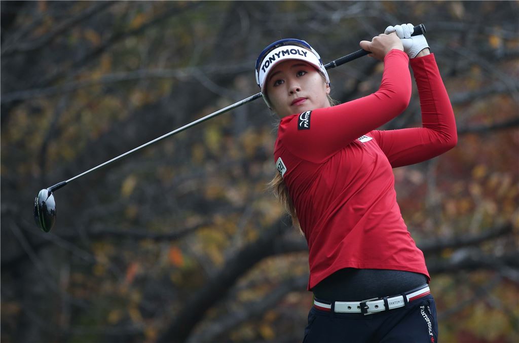 [아시아경제 노우래 기자] '미스 60' 이정은6(21ㆍ토니모리)의 5승 진군이다.10일 경기도 이천 사우스스프링스골프장(파72ㆍ6468야드)에서 열린 한국여자프로골프(KLPGA)투어 2017시즌 최종전 ADT캡스챔피언십(총상금 5억원) 첫날 4언더파를 쳐 공동 8위를 달리고 있다. 디펜딩챔프 조윤지(26ㆍNH투자증권)와 이선화(31)가 공동선두(7언더파 65타), 지한솔(21ㆍ호반건설)과 남소연(26), 장은수(19ㆍCJ오쇼핑) 등 3명이 1타 차 공동 3위(6언더파 66타)다.버디 6개와 보기 2개를 묶었다. 3, 6, 8, 9번홀 버디로 전반에 4타를 줄인 뒤 후반 13, 15번홀에서 '징검다리 버디'를 추가했다. 막판 강풍에 비까지 가세한 16~17번홀에서 연속보기를 범했다는 게 아쉽다. 선두와 3타 차, 아직은 5승 사냥으로 화려하게 피날레를 장식할 수 있는 자리다. 이미 상금퀸과 다승, 최저 평균타수상, 대상 등 개인 타이틀 싹쓸이를 예약한 상황이다. 디펜딩챔프 조윤지(26ㆍNH투자증권)가 버디만 7개를 쓸어 담아 타이틀방어에 나섰다. 2015년 E1채리티오픈 당시 1번홀부터 8연속버디를 잡아내 KLPGA투어 최다 연속버디를 작성한 '약속의 땅'이다. '3승 챔프' 김지현(26ㆍ한화)은 5언더파 공동 6위에서 공동 다승왕을 노리고 있다. 평균타수 2위 고진영(22ㆍ하이트진로)은 2언더파 공동 23위에 그쳐 사실상 역전이 불가능해졌다. 노우래 기자 golfman@asiae.co.kr<ⓒ세계를 보는 창 경제를 보는 눈, 아시아경제(www.asiae.co.kr) 무단전재 배포금지>