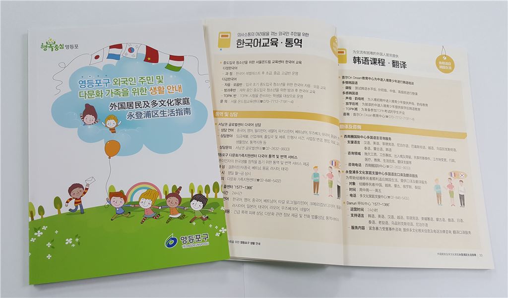내부 구성을 보면 영등포구 소개부터 시작, ▲출산, 양육, 의료 서비스 등 복지정책 ▲의사소통의 어려움을 겪는 외국인 주민을 위한 한국어교육 ·통역서비스 ▲컴퓨터 교육 및 외국인 주민의 권익 보호를 위한 무료 법률 상담 ▲취업지원 ▲부동산 계약방법 등 외국인 주민의 지역사회 적응에 필요한 알짜 정보만을 담았다.또 나라 간 문화적 차이로 갈등을 빚어왔던 쓰레기 분리배출, 주차, 금연 문제 등 지역사회 구성원으로서 지켜야 할 기초질서 확립에 필요한 정보를 실어 내?외국인의 조화로운 화합을 도모하려고 했다.책자는 1000부를 제작해 외국인 주민이 신규 등록, 체류지 변경으로 구청 및 동 주민센터에 방문 시 배부한다.또 서남권 글로벌센터, 영등포구 다문화가족지원센터 등 외국인 주민 지원기관에도 비치해 외국인 주민이 쉽게 이용할 수 있도록 할 계획이다.조길형 영등포구청장은 “급증하는 외국인 및 다문화가족이 지역사회에 조기 정착해 내외국인이 함께 화합 ·상생하는 살기좋은 영등포를 만들고자 노력하고 있다”며 “이번 생활안내 책자를 통해 영등포구에 보다 편하게 적응할 수 있길 바란다”고 전했다.다문화지원과 (☎2670-1615)박종일 기자 dream@asiae.co.kr<ⓒ세계를 보는 창 경제를 보는 눈, 아시아경제(www.asiae.co.kr) 무단전재 배포금지>