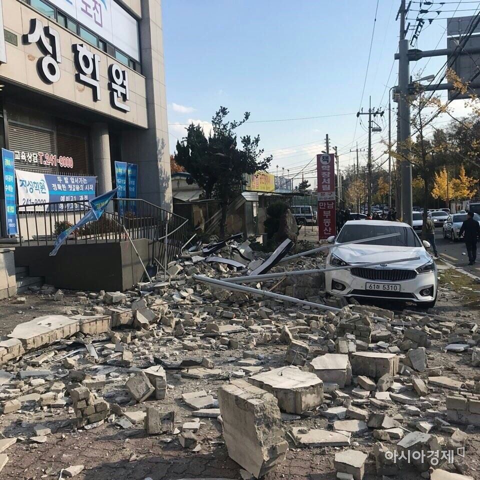 지난 15일 경북 포항에서 규모 5.4의 지진이 발생한 가운데 포항시내 한 골목에 지진의 여파로 벽돌 등이 쏟아져 있다.(사진=독자 제공)