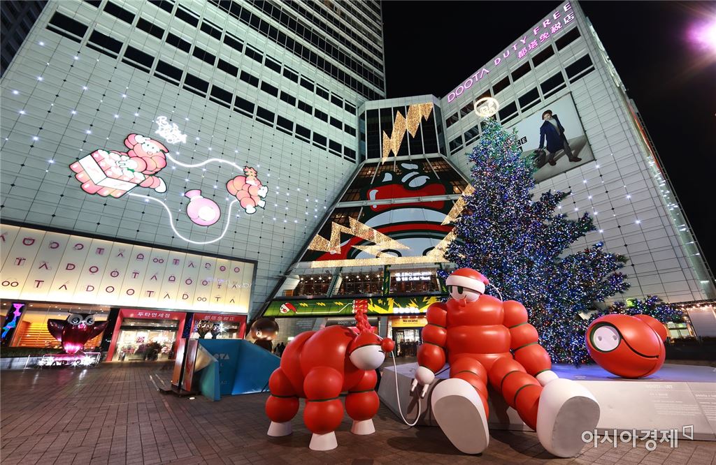 [아시아경제 오종탁 기자] 두타몰 앞에 미쉐린 캐릭터 크리스마스 조형물이 등장했다. 두타면세점과 두타몰은 신진 디자이너와 협업하는 '두타아트'(DOOTART) 프로젝트를 통해 일러스트레이터 샘바이펜(김세동)의 이색 크리스마스 설치 작품을 선보인다고 21일 밝혔다.샘바이펜은 미쉐린맨으로 알려진 '비벤덤' 캐릭터를 모티브로 한 패러디 아트로 다양한 작품활동을 펼치고 있다.이번 크리스마스 작품은 디지털 세상에서 우연히 현실 세계로 잘못 들어온 산타와 루돌프, 선물주머니를 미쉐린 캐릭터처럼 제작해 두타의 건물 외벽, 광장, 매장 등을 꾸민 것이다.오종탁 기자 tak@asiae.co.kr<ⓒ세계를 보는 창 경제를 보는 눈, 아시아경제(www.asiae.co.kr) 무단전재 배포금지>