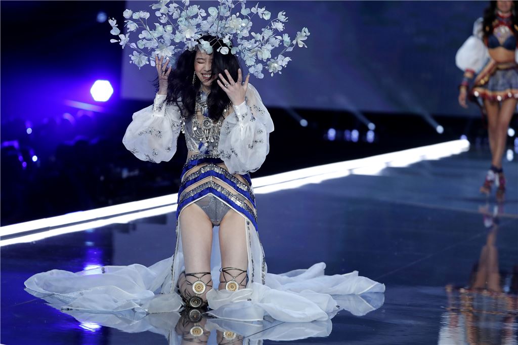[아시아경제 이진수 기자]중국 상하이(上海)에서 21일(현지시간) 열린 세계적인 속옷 브랜드 빅토리아시크릿(VS) 패션쇼 도중 중국 출신의 톱모델 밍시(28·본명 시멍야오·奚夢瑤·사진)가 무대에서 꽈당 넘어지는 민망한 장면을 연출하고 말았다.이날 밍시는 화려한 레이스에 꽃무늬 장식이 달린 속옷 의상을 입고 무대로 올랐다. 그러나 워킹 중 검투사 하이힐을 신은 발이 화사한 망토 위에 놓여 미끄러지면서 넘어진 것. 민망해서 어쩔 줄 모르는 그의 모습은 영국 데일리메일 등 여러 매체에 적나라하게 포착됐다.VS 런웨이에 서는 모델들을 흔히 '엔젤'이라고 부른다. 그래서 외신들은 이번 사고의 주인공인 밍시를 '꽈당 천사(fallen Angel)'라고 표현하기도 했다.밍시는 잠시 당황하면서도 더 이상의 참사(?)가 일어나지 않도록 머리의 꽃장식을 바로잡았다. 그는 곧 동료 모델의 도움으로 다시 일어나 런웨이를 밟았다.중국의 톱모델 밍시는 2013년부터 계속 VS 패션쇼에 모습을 드러내고 있다.<div class="testMove">