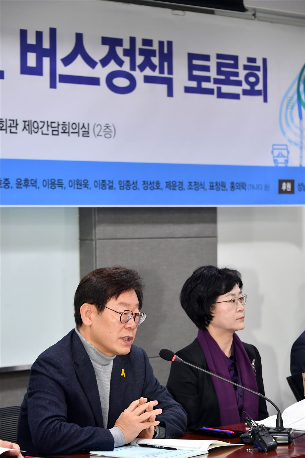 이재명 성남시장이 광역교통청 추진을 위한 경기도 버스정책 토론회에 참석해 이야기하고 있다.