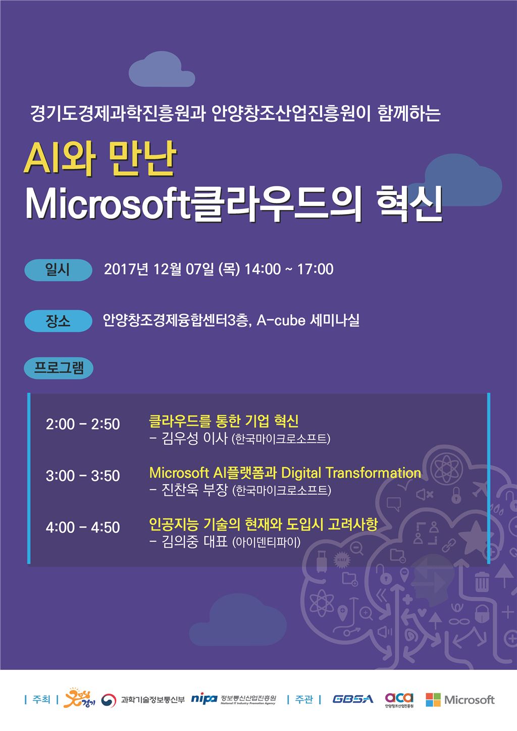 경기도경제과학진흥원의 'AI와 만난 마이크로소프트 클라우드의 혁신' 행사 포스터