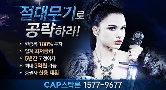 투자금을 4배까지 증가시키며 레버리지 효과를 얻고자 하는 고객들이 담보비율이 높고 종목이 제한적인 증권사 신용보다는 금리까지 저렴한 연계신용 주식자금대출 상품에 문의하고 있다.★CAP주식자금대출 바로가기
