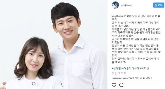 10일 V.O.S 박지헌이 자신의 인스타그램을 통해 여섯째 출산을 앞둔 아내에게 감사를 전했다./사진=박지헌 인스타그램 캡쳐