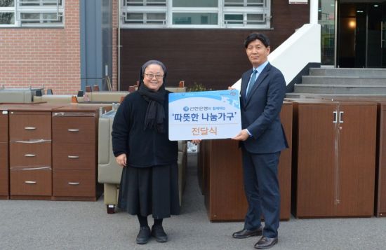 [아시아경제 손선희 기자] 신한은행은 서울 은평구 서울가톨릭 서울특별시립 은평의마을에서 불용 사무가구 기부 행사를 가졌다고 15일 밝혔다.신한은행은 이날 서울특별시립 은평의마을 및 서울, 강원, 충청 등 전국 각지의 사회복지단체 11곳에 업무용 가구 800여점을 기부했다.이번 ‘따뜻한 나눔 가구 전달’ 행사는 영업점의 이전 및 통합, 인테리어 변경 등으로 더 이상 사용하지 않는 탁자, 의자, 책상 등 가구를 모아 정비한 뒤 필요로 하는 지역의 사회복지단체에 지원하는 사회 공헌 활동이다. 신한은행은 2010년 사무가구 1600여점을 시작으로 올해까지 매년 기부를 통해 총 1만1600여점을 사회복지단체에 지원해왔다. 시립은평의마을 관계자는 “복지 시설 증축으로 인해 사무가구가 부족했는데 필요한 물품들을 기부해 준 신한은행에 감사드린다”며 “새 것처럼 잘 관리된 물품이라서 사용하는 분들이 좋아할 것 같다”고 감사의 마음을 표했다. 신한은행 관계자는 “은행에서 사용하지 않는 사무가구를 필요로 하는 사회복지단체와 나눌 수 있어 뜻 깊다”며 “앞으로도 사무용 가구 나눔 행사를 비롯해 은행의 자원과 재능을 다양하게 활용할 수 있는 사회공헌 활동을 계속해 나가겠다”고 밝혔다.손선희 기자 sheeson@asiae.co.kr<ⓒ세계를 보는 창 경제를 보는 눈, 아시아경제(www.asiae.co.kr) 무단전재 배포금지>