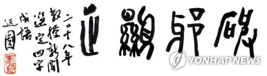 김양동 계명대 석좌교수가 금문체(金文體)로 직접 휘호한 '파사현정(破邪顯正)' / 사진=연합뉴스