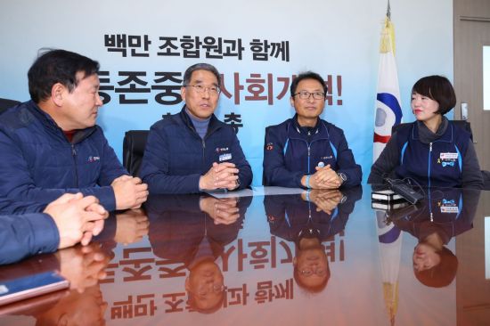 [아시아경제 김민영 기자]민노총, 한노총 등 양대노총 지도부가 12일 무술년 새해를 맞아 상견례 및 간담회를 열었다.김명환 민노총 위원장 등 민노총 지도부는 이날 서울 여의도 한노총 사무실을 찾아 김주영 한노총 위원장 등 한노총 지도부를 만나 노동현안 공동대응을 함께 하기로 합의했다. 지난 1일 임기를 시작한 김명환 위원장 등 민노총 지도부가 한노총 사무실을 찾아 한노총 지도부를 만난 건 이번이 처음이다.이날 간담회에서 양대노총은 노동존중 사회 실현을 위해 휴일연장근로 수당 중복할증, 노동시간 관련 근로기준법 개악과 최저임금 산입범위 확대 등 긴급한 노동현안에 대해 연대하고 공조해 나간다는 입장을 확인했다고 밝혔다.양대노총은 “사회적대화 관련 양대노총이 함께 대응하는 것이 가장 바람직하다는데 뜻을 같이 했다”며 “지속적으로 소통하며 노력해가기로 했다”고 전했다.양대노총에 따르면 오는 24일 노사정 대표자회의 참여와 관련해 민노총은 내부논의 시작 등 참석이 어려운 조건과 상황을 한노총에 밝혔으며 한노총에 함께 대응해가자는 의견을 전달했다.이에 한노총은 지난 10일 산별대표자회의를 통해 대표자회의 참석을 결정한 바 있어 연기와 불참은 곤란한 입장이라며 대표자회의를 함께 할 수 있는 방안에 대해 추후 협의해 나가자고 호응했다.이날 간담회에는 양대노총 위원장을 비롯해, 한노총에선 이성경 사무총장, 박대수 상임부위원장, 이경호 사무처장 등이 참석했고, 민노총에선 김경자 수석부위원장, 백석근 사무총장, 김연홍 사무부총장 등이 참석했다.김민영 기자 mykim@asiae.co.kr<ⓒ세계를 보는 창 경제를 보는 눈, 아시아경제(www.asiae.co.kr) 무단전재 배포금지>