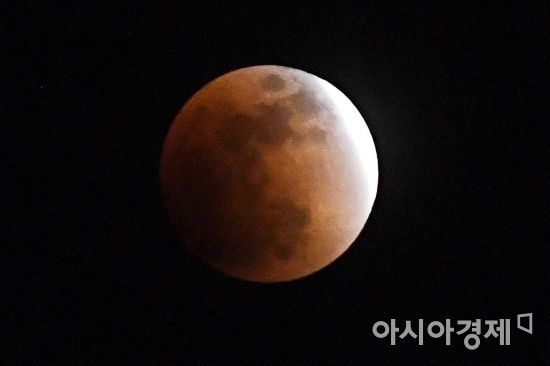 슈퍼문과 블루문, 블러드문을 한번에 볼 수 있는 31일 밤 서울 강서한강공원 하늘 위로 뜬 슈퍼문에 지구 그림자가 드리우고 있다. 이번 개기월식은 달이 지구와 가까이 접근해 평소보다 크게 보이는 '슈퍼문'과 한 달에 두 번 뜨는 보름달 중 두 번째인 '블루문', 그리고 개기월식으로 달이 붉게 변하는 '블러드문' 등 세 가지 현상이 한꺼번에 나타날 것으로 예상된다./김현민 기자 kimhyun81@<ⓒ세계를 보는 창 경제를 보는 눈, 아시아경제(www.asiae.co.kr) 무단전재 배포금지>