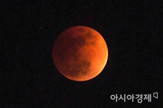 지난달 31일 밤, 서울 강서한강공원 하늘 위로 뜬 슈퍼문에 지구 그림자가 드리우고 있다./김현민 기자 kimhyun81@