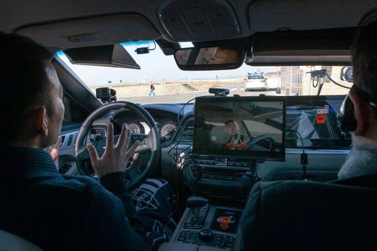 SK텔레콤과 한국교통안전공단은 5일 화성 자율주행 실험도시 '케이-시티(K-City)'에서 복수의 5G자율주행차가 대화하며 주행하는 '협력 주행' 시연에 성공했다. 5G와 HD맵으로 사각지대 어린이를 발견해 주변 차량에 경고를 주자, 자율주행차가 스스로 멈춰서고 있다.
