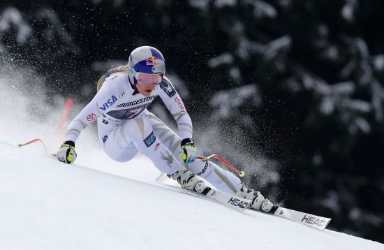 린지 본이 4일 열린 알파인 스키 월드컵 여자 활강 경기에서 역주하고 있다. [이미지출처=EPA연합뉴스]