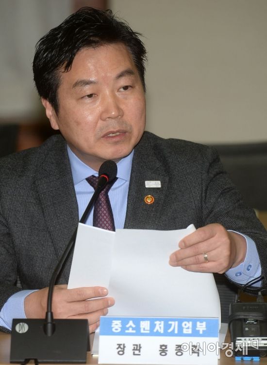 8일 제 1차 금융지원위원회에서 홍종학 중소벤처기업부 장관이 발언하고 있다. 사진=문호남 기자