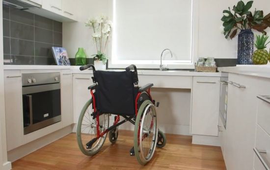 거동이 어려워 휠체어 등을 이용해 이동하는 노인들을 위해 휠체어 등에 앉아서 요리할 수 있게 낮게 설계된 주방.[사진출처=유튜브 화면캡처]