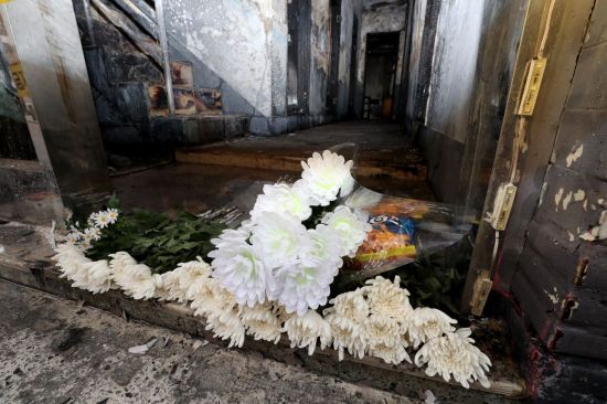 처참한 현장 앞에 국화꽃만 <br /> (서울=연합뉴스) 김주형 기자 = 서울 종로구 서울장여관 방화사건으로 여행 중이던 세 모녀가 숨지는 등 안타까움이 더해지는 22일 오전 시민들이 추모의 뜻을 드러내기 위해 놓은 것으로 보이는 국화 수십 송이가 놓여 있다. 2018.1.22<br /> kjhpress@yna.co.kr<br /> (끝)<br /> <br /> <br /> [저작권자(c) 연합뉴스, 무단 전재-재배포 금지]