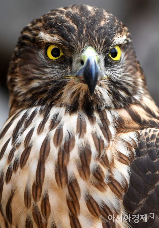 천연기념물 제323-1호, 참매가 11일 서울 중구 남산골한옥마을에서 열린 매사냥 체험 행사에서 멋진 자태를 뽐내고 있다. 참매는 먹이사슬의 정점에 위치한 포식자로서 매우 사나운 맹금류다. 대표적인 사냥매로서 꿩매라고도 부르며 나이와 모양에 따라 보라매, 수진이, 산진이 등 부르는 이름도 다르다. 특히 보라매의 경우 사람으로 치면 청소년기에 해당하여 동작이 매우 민첩하고 용맹해서 사냥매로서 인기가 좋다. /문호남 기자 munonam@<ⓒ세계를 보는 창 경제를 보는 눈, 아시아경제(www.asiae.co.kr) 무단전재 배포금지>