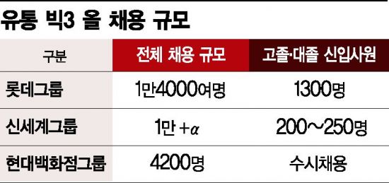 [아시아경제 지연진 기자] 지난해 3월 공식 오픈한 서울 잠실의 복합쇼핑몰 롯데월드타워몰은 9200명의 고용을 유지하고 있다. 2016년 첫선을 보인 신세계그룹의 복합쇼핑몰 스타필드 하남도 5000명이 생계를 책임진다. 스타필드 하남의 건설 공사 과정부터 살펴보면 총 3만명이 넘는 고용을 창출했다.유통업종은 국내 산업 중 가장 많은 일자리를 창출하는 산업이다. 대형마트의 경우 매장이 한 개 생길 때마다 300~500명을 신규 고용하고, 대형 백화점과 복합쇼핑몰은 5000여개의 일자리가 만들어진다. 한국경제연구원이 지난 5년간 국내 30대 대기업의 종업원수를 분석한 결과 유통업계 종업원수가 가장 많이 증가했다. 이마트의 순증 종원업수가 1만5307명으로 1위였고, 현대자동차(9906명)와 스타벅스커피코리아(6958명), CJ CGV(6525명) 등의 순이었다. 이는 고용규모가 큰 제조업 중심의 대기업 보다 많은 수준이다. 최근 수년간 저성장이 이어지면서 출점을 통해 몸집을 키운 결과다. 일자리 창출에는 최대 효자인셈이다. 하지만 골목상권 보호를 이유로 신규 출점이 가로막히면서 일자리 창출도 쉽지 않게 됐다. 한국경제연구원은 국회에서 계류 중인 유통산업발전법 개정안이 통과될 경우 매년 총 3만5706개의 일자리가 사라질 수 있다는 분석을 내놓기도 했다. 13일 관련업계에 따르면 롯데, 현대, 신세계 등 '빅3' 백화점은 현 정부 들어 신규 출점 프로젝트를 아예 접었다. 현대백화점은 2020년 서울 여의도점, 신세계백화점은 2021년 대전점을 끝으로 당분간 오픈 계획이 없다. 롯데백화점은 2015년 마산점 개점 후 신규 출점이 전무한 상태다. 현대백화점 여의도점, 신세계백화점 대전점의 경우도 현 정부 출범 전 투자가 결정된 경우다.대형마트의 상황도 비슷하다. 롯데마트 양평점이 이날 오픈한 것을 제외하고 롯데마트를 비롯해 이마트와 홈플러스는 사실상 추가 매장 출점을 포기했다. 롯데마트와 이마트는 신규 출점 계획을 세웠다가 지역 내 상인 반발로 미뤄진 상태다. 이들 점포 역시 인허가의 벽을 넘기가 쉽지 않아 내년 오픈도 장담할 수 없는 상태다. 출점 절벽에 직면하면서 유통 대기업의 일자리 창출도 딜레마에 빠졌다. 지난해 문재인 정부의 국정 공약에 맞춰 대규모 일자리 창출을 약속했지만, 내수 위축과 시장 포화, 출점 규제 등으로 인해 점포 확장이 어려워진 탓이다. 대규모 점포 출점을 위해 반드시 필요한 지역상인들과 '상생협약'이 난항을 겪고 있는데다 대기업 계열 복합쇼핑몰 영업규제 등 규제까지 강화될 조짐이다.유통빅3는 그나마 올해는 작년 수준의 채용을 유지한다는 계획이다.