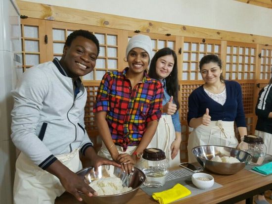 ’구름에’ 방문객들이 안동 전통주인 가양주 만들기 체험을 하고 있다. [사진= SK행복나눔재단 제공]