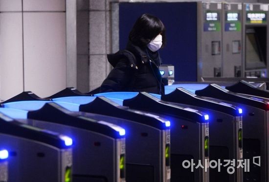 지난 1월 15일 미세먼지 비상저감조치 발령에 따라 서울 지역 출퇴근 시간대 버스와 지하철 등 대중교통이 무료로 운행됐다. 서울 시청역에서 한 시민이 무료로 지하철을 이용하고 있다. /문호남 기자 munonam@