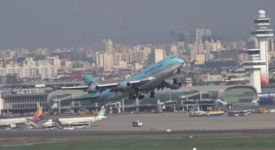 대한항공이 1989년 도입한 4발기 B747-400기종이 제주공항을 이륙하는 모습. [사진=유튜브 화면캡처].