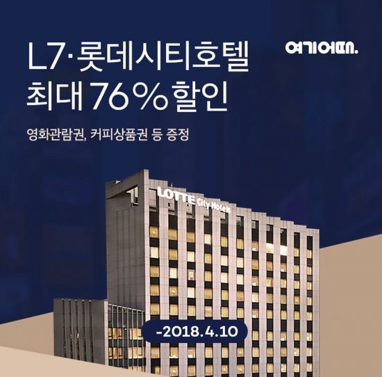 [아시아경제 손선희 기자] 숙박 온·오프라인 연계(O2O) 플랫폼 기업 '여기어때'가 롯데호텔과 손잡고 브랜드 기획전을 연다.이날 여기어때에 따르면 다음 달 10일까지 진행되는 이번 기획전은 전국 롯데시티호텔 7곳, L7호텔 3곳과 손잡고 최대 76% 할인된 가격에 숙박과 부가혜택을 함께 선보인다. 이번 기획전을 통해 1박 예약시 롯데시티호텔은 영화관람권과 레이트 체크아웃 서비스를, L7은 영화관람권과 스타벅스 상품권 등 혜택을 제공한다.아울러 매월 특급호텔 한 곳을 파격적인 가격에 내놓는 '위시리스트 호텔’' 특가전을 실시한다. 이달에는 '롯데호텔 제주'로, 최저가 예약뿐 아니라 10만 원 상당의 풍차 라운지 무료 이용, 오는 9일까지 선착순 2000명에게 해당 호텔예약시 사용 가능한 4만 원 할인쿠폰 등을 제공한다.손선희 기자 sheeson@asiae.co.kr<ⓒ세계를 보는 창 경제를 보는 눈, 아시아경제(www.asiae.co.kr) 무단전재 배포금지>