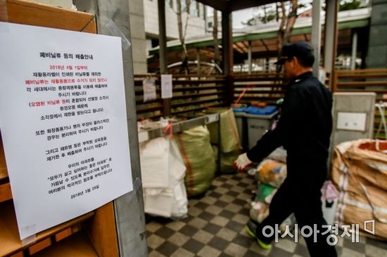 [아시아경제 지연진 기자]#직장인 김미현(35·여)씨는 1일 주말을 맞아 봄맞이 대청소 후 아파트 단지내 재활용 쓰레기장에서 분리 수거를 하다 깜짝 놀랐다. 평소 비닐봉투를 분리하기 위해 마련된 자리가 없어진 것. 몇 달 전부터 아파트 엘리베이터에 스티로폼 종류가 재활용이 불가능하다는 공지가 붙어있었지만, 폐비닐까지 일반 쓰레기로 종량제 봉투에 담아 배출해야 하는지는 몰랐다. 김씨는 "재활용이 안된다고 해 어쩔 수 없이 비닐봉투들을 집으로 다시 가져와 쓰레기 종량제 봉투에 담아 버렸다"면서 "이럴줄 알았으면 지난주에 대청소를 했을 것"이라고 말했다. 이달 1일부터 서울과 수도권 일부 지역에서 스티로폼에 이어 폐비닐과 페트병까지 재활용 수거가 중단되면서 주말 사이 편의점 쓰레기 종량제봉투 판매량이 급증한 것으로 나타났다. 2일 편의점 업계에 따르면 CU에선 지난달 31일부터 이달 1일까지 주말 이틀간 전국 점포에서 종량제 봉투 판매량은 전주대비 4.8% 증가했다. 하지만 폐비닐과 페트병 재활용 수거가 중단된 서울의 경우 종량제 봉투 판매량은 10.3%나 늘었다. 같은기간 전국 점포 기준 세븐일레븐은 9.5% 증가했고, GS25는 4.7% 늘었다. 현재 편의점에선 5,10,20,30,50,60,75,100ℓ 등 8가지 용량별 쓰레기봉투를 판매하고 있다.다만 대형마트에선 종량제 봉투 판매가 부진했다. 이마트가 지난달 31일에서 이달 1일까지 주말 이틀간 종량제 판매 실적은 2주전보다 0.4% 늘어나는데 그쳤다. 이마트는 대형마트 월2회 의무휴업 제도로 인해 지난달 25일 휴무였던 만큼 2주전 매출과 비교했다. 대형마트 관계자는 "종량제 봉투의 경우 집 근처 편의점과 슈퍼마켓 등을 자주 이용하는 만큼 대형마트 영향을 적을 것"이라고 설명했다. 앞서 서울과 수도권의 일부 재활용 수거 업체들은 스티로폼과 폐비닐, 페트병까지 수거를 거부하면서 쓰레기 분리수거 현장에서 큰 혼란을 겪고 있다. 스티로폼과 페트병 등을 이용해 식품을 포장하는 업체들은 이번 사태를 예의 주시하고 있지만, 일부 업체의 상황인 만큼 파장은 크지 않을 것으로 전망했다. 한 식품업체 관계자는 "현재 일부 재활용업체만 거부하고 있는 상황이며 국가 정책의 변화는 없기 때문에 영향은 거의 없을 것"이라며 "그러나 만약 정책의 변화가 이뤄진다면 제조업체들 역시 이에 발맞춰 패키징(포장) 등 전략을 달리해야할 것으로 판단된다"고 전했다. 지연진 기자 gyj@asiae.co.kr<ⓒ세계를 보는 창 경제를 보는 눈, 아시아경제(www.asiae.co.kr) 무단전재 배포금지>