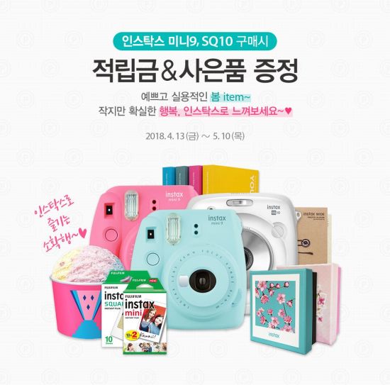 [아시아경제 임온유 기자] 한국후지필름이 인스탁스 제품을 구매하면 적립금과 사은품을 증정하는 ‘인스탁스 소확행 이벤트’를 진행한다고 16일 밝혔다. 한국후지필름 관계자는 “작지만 확실한 행복이라는 뜻의 소확행이 소비 트렌드로 자리 잡고 있다”며 “많은 소비자가 예쁘고 실용적인 인스탁스를 봄 아이템으로 장만하고, 적립금과 사은품까지 받을 수 있는 소확행을 누리시길 바란다”고 말했다.한국후지필름은 이벤트 행사 제품을 구매자에게 후지필름몰에서 현금처럼 사용 가능한 적립금과 필름 또는 액세서리 보관함으로 활용 가능한 스토리지 박스를 선물한다.‘인스탁스 미니9’ 또는 ‘인스탁스 미니9 패키지’ 구매 시 쇼핑몰 적립금 1만원과 스토리지 박스, ‘인스탁스 스퀘어 SQ10’ 또는 ‘인스탁스 스퀘어 SQ10 패키지’를 구매하면 쇼핑몰 적립금 3만원과 스토리지 박스를 증정한다.이번 소확행 이벤트는 내달 10일까지 한국후지필름 공식 온라인 쇼핑몰 후지필름몰에서 참여할 수 있다.한편, 인스탁스 미니9는 트렌디한 컬러인 코발트 블루, 아이스 블루, 스모키 화이트, 플라밍고 핑크, 라임 그린 등 총 5가지 색상으로 구성돼 봄 피크닉과 어울리는 아날로그 즉석 카메라다.인스탁스 스퀘어 SQ10은 인스탁스 제품 중 최초로 디지털 이미징 기술을 탑재한 하이브리드 즉석카메라로 촬영 전이나 후에 다양한 편집을 적용해 즉시 인화가 가능하다.임온유 기자 ioy@asiae.co.kr<ⓒ세계를 보는 창 경제를 보는 눈, 아시아경제(www.asiae.co.kr) 무단전재 배포금지>