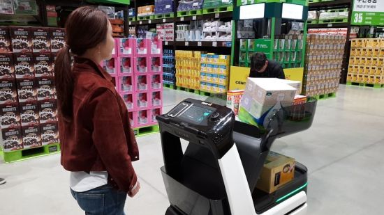 자율주행 쇼핑카트 ‘일라이’가 쇼핑 안내를 하고 있다.