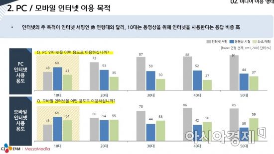 모바일 인터넷에서 '동영상' 즐겨본다고 응답한 10대 63%