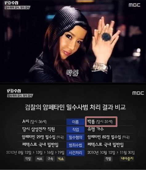 투애니원 출신 가수 박봄이 나이 논란에 휩싸였다.24일 방송된 MBC ‘PD수첩'에서는 지난 2010년 박봄이 미국에서 암페타민 82정을 밀수입했다가 입건유예 처분받은 사건을 재조명했다.전 마약 담당 검사였던 조수연 변호사는 박봄 사건에 대해 “암페타민 82정을 입건 유예한 건 정말 이례적인 일이다”라며 “피치 못할 사정이 있더라도 최소 집행유예 정도는 받는 것이 정상적인 처리 방법이다”라고 말했다.특히 이날 방송에서는 암페타민 밀수 당시 박봄의 나이를 31세로 표기했다. 그러나 포털사이트 프로필상 박봄은 1984년생으로 현재 한국식 나이 35세, 만34세다.‘PD수첩’의 보도가 2010년 기준 나이를 나타낸 것이라면, 박봄은 1979~1980년생이므로 현재 한국식 나이로 39~40세 및 만 38~39세로 추정된다.온라인이슈팀 issue@asiae.co.kr<ⓒ세계를 보는 창 경제를 보는 눈, 아시아경제(www.asiae.co.kr) 무단전재 배포금지>