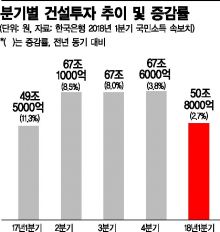 [아시아경제 김유리 기자] 국내 건설투자액 증가 추세에 '적색등'이 켜졌다. 건설투자액 자체는 늘어났지만 증가 추세는 급격히 감소하고 있다. 현재의 흐름을 고려할 때 올해 하반기에 감소세로 돌아설 가능성이 크다. 1일 한국건설산업연구원과 통계청 등에 따르면 올해 1ㆍ4분기 건설투자액은 50조8000억원으로 전년 동기 대비 2.7% 증가했다. 건설투자액 증가세는 이어지고 있다. 2015년 1분기에 전년 동기 대비 4.0% 늘어난 것을 시작으로 올해 1분기까지 12분기(3년) 연속 증가했다. 1993년 1분기부터 14분기 연속 증가한 이후 가장 오랜 기간 증가세를 이어가고 있다.문제는 건설투자액 증가율이 둔화하고 있다는 점이다. 건설투자는 지난해까지 건축업 세부 업종별 호조에 힘입어 꾸준히 증가했다. 한국은행에 따르면 지난해 건설투자액은 전년 대비 7.6% 증가한 251조1000억원을 기록했다. 토목투자가 부진했으나 주거용과 비주거용 건축투자는 양호했다. 주거용ㆍ비주거용 건축투자는 전년 대비 14.9%, 9.4% 각각 증가했다. 2013년부터 5년 연속 늘어났다. 투자 금액도 각각 92조7000억원, 91조7000억원으로 역대 최대치를 기록했다.이처럼 투자 금액이나 증가율 자체만 놓고 보면 긍정적인 결과로 해석할 수도 있다. 하지만 분기별로 자세히 들여다보면 얘기는 달라진다. 지난해 4분기부터 위험 신호는 감지되고 있다. 최근 분기별 건설투자 증가율이 대표적이다. 지난해 1분기 11.3%, 2분기 8.5%, 3분기 8.0%, 4분기 3.8%, 올해 1분기 2.7% 등 시간이 갈수록 증가율이 줄었다. 올해 1분기 증가율은 지난해 1분기의 4분의 1 수준이다.건설투자 통계의 기초가 되는 '건설기성' 증가율도 이런 흐름을 보이고 있다. 전년 동월 대비 증가율은 올해 1월 19.8% 늘었다. 하지만 2월에는 4.7% 늘어나는 데 그쳤다. 증가율 감소 추세를 고려할 때 마이너스 전환 가능성도 엿보인다. 건설기성이란 건설업체 국내공사 현장별 시공 실적을 금액으로 조사해 집계한 통계다. 조사대상 기간인 한 달 동안 시공한 공사 실적을 조사한 것이므로 해당 월에 실행한 건설투자를 의미한다.2월 기성 증가율이 급격히 둔화한 것은 민간뿐만 아니라 공공기관 위축도 심각했기 때문이다. 민간기관 기성은 1월에 28.5% 증가했지만 2월엔 9.4% 증가에 그쳤다. 공공기관 기성은 1월에 전년 동기 대비 1.5% 감소했는데 2월에도 6.9% 감소했다.전문가들은 올해 하반기 중 건설투자 증가율을 둘러싼 비관적인 전망을 내놓았다. 건설투자는 2000년 이후 정점을 기록한 다음 4~5분기가 지난 이후 마이너스 성장률을 기록하는 모습을 보였다. 이러한 추세를 고려할 때 2018년 하반기 건설투자가 감소세로 돌아설 가능성이 크다는 게 전문가들의 판단이다.박철한 건산연 부연구위원은 "하반기에는 시중 금리 상승 압력이 더욱 커지고 주택경기가 둔화하는 등 건설경기 환경이 좋지 않을 것"이라며 "정부 사회간접자본(SOC) 예산 감축 영향으로 토목투자도 지속적으로 위축할 가능성이 큰데 향후 경기 위축 속도가 더욱 빠를 수 있기 때문에 관련 위험 요인을 살펴서 대비할 필요가 있다"고 말했다.김유리 기자 yr61@asiae.co.kr<ⓒ세계를 보는 창 경제를 보는 눈, 아시아경제(www.asiae.co.kr) 무단전재 배포금지>