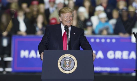 지난달 28일 미시간주에서 열린 집회에 참가한 도널드 트럼프 미국 대통령이 지지자들의 '노벨' 연호에 미소를 감추지 못하고 있다. [이미지출처=EPA연합뉴스]