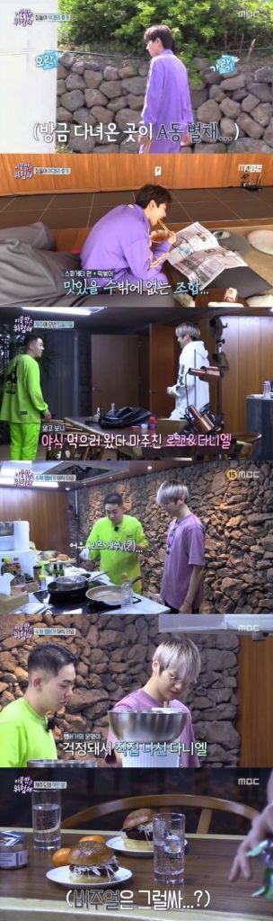 ‘이불 밖은 위험해’ 로꼬가 만든 수제 햄버거가 강다니엘로부터 칭찬을 받았다.3일 방송된 MBC 예능 프로그램 ‘이불 밖은 위험해’에서는 가수 로꼬가 야식으로 만든 수제 햄버거가 공개됐다.이날 로꼬는 수제 햄버거의 패티까지 직접 만들어야했는데, 로꼬는 패티를 기름에 넣는 것부터 어려워했다.옆에서 지켜보던 그룹 워너원 강다니엘은 “퐁당 하면 안 된다. 사르르 넣어야 된다”고 조언했다. 로꼬는 강다니엘의 조언에 따라 패티를 조심스레 기름에 넣었으나 기름불이 센 탓에 패티는 다 타버렸다.우여곡절 끝에 로꼬의 수제 햄버거가 완성됐고, 강다니엘은 “먹을수록 맛있다”며 햄버거를 맛있게 먹는 모습으로 흐뭇함을 자아냈다.한편 이날 방송된 ‘이불 밖은 위험해’는 집돌이들이 두 번째 공동 휴가로 떠난 제주도 숙소에서의 모습이 그려졌다.온라인이슈팀 issue@asiae.co.kr<ⓒ세계를 보는 창 경제를 보는 눈, 아시아경제(www.asiae.co.kr) 무단전재 배포금지>