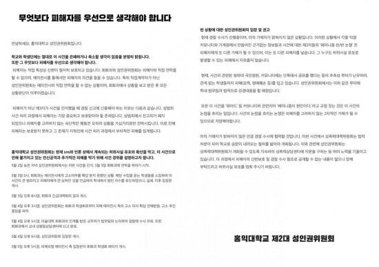 홍익대학교 성인권위원회 입장 / 사진=홍익대학교 성인권위원회 페이스북 페이지