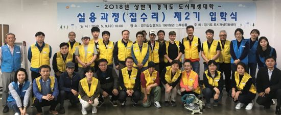 [아시아경제(수원)=이영규 기자] 경기도 도시재생지원센터는 9일 수원 권선구 경기상상캠퍼스에서 도시재생대학 제2기 집수리과정 수강생 입학식을 가졌다고 10일 밝혔다.집수리 과정은 쇠퇴가 진행되는 지역 주민들이 스스로 노후 건축물을 관리ㆍ개선 할 수 있는 능력을 배양하는 실용 교육이다. 지난 4월 제1기 집수리과정을 통해 29명의 수료생이 배출됐다.제2기 집수리과정은 오는 18일까지 진행된다. 이번 교육 과정에는 각 시ㆍ군에서 집수리과정을 신청한 30명의 수강생이 참여한다. 주요 교육 내용은 ▲안전한 공구사용법 ▲수전 및 양변기 설치 ▲창문 및 창틀 교체 ▲곰팡이 예방 및 단열시공 ▲주택 조명 및 전등회로 설치 등이다.경기도 도시재생지원센터는 경기도시공사가 수탁받아 운영하고 있다. 임계호 도시재생지원센터 센터장은 "교육만족도 조사 결과 지난 제1기 집수리과정 수강생의 교육만족도가 아주 높았다"며 "20명의 수료생이 집수리 협동조합 설립 및 집수리 봉사활동 참여 의사를 밝혀 지역상생발전 및 일자리 창출이 기대된다"고 밝혔다.이영규 기자 fortune@asiae.co.kr<ⓒ세계를 보는 창 경제를 보는 눈, 아시아경제(www.asiae.co.kr) 무단전재 배포금지>