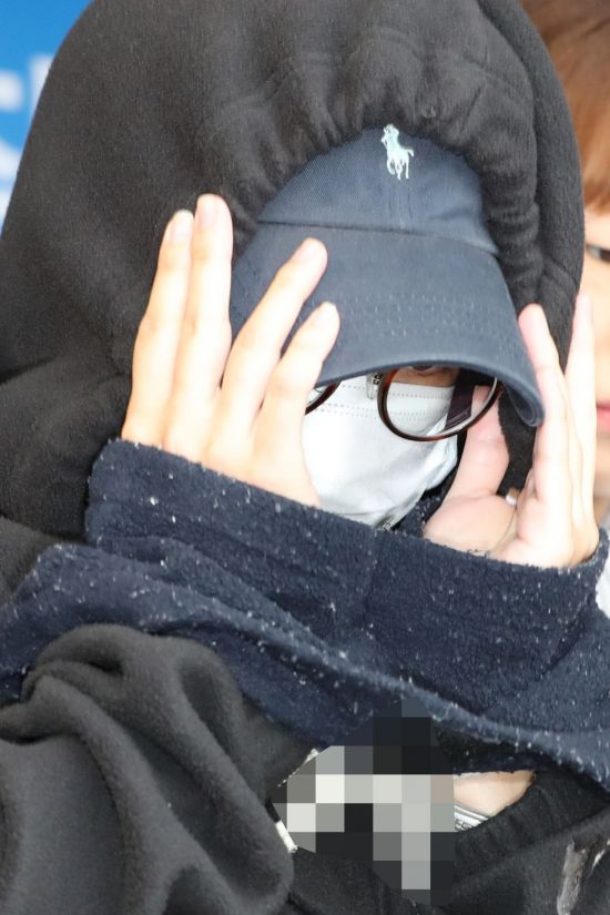 홍익대 회화과의 인체 누드 크로키 수업에서 남성 모델의 나체 사진을 유출한 것으로 밝혀진 동료모델 안모(25·여)씨가 12일 오후 서울서부지법에서 영장실질심사를 받기 위해 마포경찰서를 나서고 있다. 사진=연합뉴스