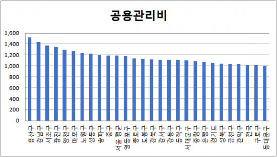 [아시아경제 박민규 기자] 서울에서 공용관리비가 가장 비싼 곳은 용산구인 것으로 조사됐다.20일 한국감정원 공동주택관리정보시스템에 따르면 서울 평균 아파트 공용관리비는 지난 2월 기준 전용면적 1㎡당 1192원으로 집계됐다. 국민주택 규모(85㎡)로 환산하면 10만1320원이다. 공용관리비는 전기·수도요금과 난방비 등 개별사용료를 제외한 일반관리비와 수선·유지비를 말한다.서울에서 공용관리비가 가장 비싼 자치구는 용산구였다. 1㎡당 1523원으로 85㎡의 경우 12만9455원을 내야 한다. 이어 강남구(1439원)·서초구(1373원)·광진구(1343원)·양천구(1294원)·마포구(1265원)·노원구(1235원)·성동구(1226원)·송파구(1198원)·중구(1194원) 순이었다. 나머지 구는 공용관리비가 서울 평균치보다 낮았다.경기도 평균 아파트 공용관리비는 1㎡당 1057원, 전국 평균은 1014원으로 조사됐다. 구로구(1012원)와 동대문구(1010원)는 전국 평균치보다 공용관리비가 적었다.박민규 기자 yushin@asiae.co.kr<ⓒ세계를 보는 창 경제를 보는 눈, 아시아경제(www.asiae.co.kr) 무단전재 배포금지>