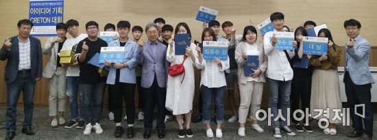 [아시아경제 호남취재본부 김춘수 기자] 호남대학교 문화콘텐츠창의인재양성사업단(단장 김명중)은 지난 5월 26일 김대중컨벤션센터에서 ‘아이디어 기획 크레톤 경진 대회’를 실시했다고 28일 밝혔다.이날 사업단 소속 신문방송학과, 문화산업경영학과, 인터넷콘텐츠학과 등 3개 학과 학생 28명 14개 팀이 참가해 ‘4차 산업혁명과 방송·영상콘텐츠 기획’, ‘4차 산업혁명과 콘텐츠 기획’, ‘가상기업에서의 문화상품 기획’을 주제로 시각 장애인을 위한 스마트지팡이, 3D(Useful Glasses), IOT 우산 등 증강현실(AR), 가상현실(VR)과 인공지능(AI)을 이용한 작품을 전시 발표했다.이번 14개 팀 중 ‘Useful Glasses’를 기획한 3D팀(인터넷콘텐츠학과)이 대상을 받았으며, 최우수상은 ‘스마트지팡이’를 기획한 버디(신문방송학과)팀, ‘IOT 우산’을 기획한 B.P(인터넷콘텐츠학과)팀이 수상했다. 우수상은 Licht(신문방송학과), 멋있는 태도(인터넷콘텐츠학과), (주)JK(문화산업경영학과)팀이 받았으며, SVR(신문방송학과), 최공대(인터넷콘텐츠학과), ICMD(인터넷콘텐츠학과)팀이 장려상을 받았다.대상과 최우수상을 받은 3D팀 (인터넷콘텐츠학과), B.P팀 (인터넷콘텐츠학과), 버디팀 (신문방송학과)은 문화콘텐츠사업단 융합교육우수자해외벤치마킹을 참가할 수 있는 기회가 주어진다.호남취재본부 김춘수 기자 ks7664@hanmail.net<ⓒ세계를 보는 창 경제를 보는 눈, 아시아경제(www.asiae.co.kr) 무단전재 배포금지>