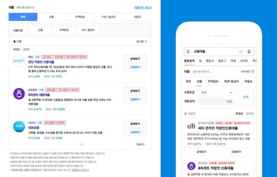 [아시아경제 손선희 기자] 포털사이트 '다음(Daum)'이 대출상품 검색 서비스를 시작한다.8일 금융상품 추천 플랫폼 핀다(Finda)에 따르면 핀다와 카카오(Kakao)는 제휴를 맺고 포털 다음에서 신용대출, 개인 간 거래(P2P)·중금리 대출 등 대출상품에 대한 정보를 제공하는 '대출검색광고 서비스'를 론칭했다.포털 이용자가 대출을 검색할 경우 핀다가 보유한 각종 대출상품콜렉션을 연동해 검색 결과로 노출시키는 방식이다. 다음에서 대출 관련 키워드를 검색하면 은행, 저축은행, 캐피탈 및 카드사 등에서 제공하는 관련 대출상품 리스트가 나온다. 대출상품 정보는 신용·주택담보·P2P 및 중금리·자동차 대출 등 4가지 카테고리로 나눠 제공된다. 일부 카테고리에 대해서는 직접 상품 추천도 한다.그간 네이버, 다음 등 국내 포털에서 신용카드 상품 광고를 제공한 경우는 있었으나 대출상품 정보를 직접 제공하고 추천까지 하는 것은 이번이 처음이다. 핀다 측은 "대출상품 추천 서비스를 통해 검색 한 번으로 다양한 대출상품을 금융회사에 관계없이 추천 순과 최저 금리 순으로 비교할 수 있다"며 "해당 상품의 홈페이지에 직접 접속하지 않고도 바로 상품을 가입하러 갈 수 있다"고 설명했다.손선희 기자 sheeson@asiae.co.kr<ⓒ세계를 보는 창 경제를 보는 눈, 아시아경제(www.asiae.co.kr) 무단전재 배포금지>
