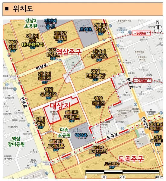 청담·도곡 아파트지구 내 역삼주구 위치도