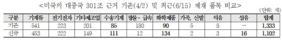 [아시아경제 김혜원 기자, 세종=김민영 기자] 도널드 트럼프 미국 행정부가 지난 15일 발표한 500억달러 상당의 중국 수입품에 대한 25% 관세 부과 품목에 기존 전기·전자와 기계·철강은 물론 수송기계와 화학제품, 섬유 등의 품목도 대거 포함돼 우리 기업들의 직간접 피해가 우려된다.18일 현대경제연구원과 한국무역협회 등에 따르면 미국 무역대표부(USTR)가 지난 4월2일 공개한 대(對)중국 제재 품목 1333개와 이달 15일 발표한 1102개 품목을 비교하면 수송기계와 화학제품, 섬유 품목 수가 각각 111개, 134개, 16개 포함됐다.4월 1차 제재 품목에서 수송기계는 85개, 화학제품은 90개였던 점을 감안하면 각각 26개, 44개 증가했다. 섬유 품목은 단 한 개도 없다가 이번에 16개 순증했다. 전기·전자 제재 품목 수는 223개에서 222개로 1개 줄었다. 특히 TV와 휴대폰 등 미국 소비자가 일반적으로 구매하는 소비재는 이번에 제외함으로써 자국 피해를 최소화하려는 의도가 엿보였다는 분석이다.박진우 무역협회 통상지원단 과장은 "트럼프 행정부가 내놓은 2차 제재 품목에서 새롭게 추가된 284개 품목에 주목해야 한다"면서 "향후 공청회 등을 거쳐 최종 확정되겠지만 화학제품과 섬유 분야에서 중국 현지에 공장을 두고 미국에 직접 수출하는 한국 기업은 직접적인 피해를 입을 수도 있다"고 우려했다. 박 과장은 이어 "중국에 중간재를 수출하는 한국 기업 역시 간접적인 피해가 불가피할 것"이라며 "트럼프 행정부가 TV와 휴대폰을 일부러 뺀 것은 미국 소비자 관점에서 관세 부과 시 가격만 높아질 것이라는 판단 아래 자국 내 피해를 줄이기 위한 조치로 보인다"고 판단했다.