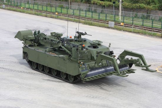 5일 군 관계자에 따르면 현대로템은 2014년부터 315억원을 투자해 지뢰제거용 장애물개척전차(사진 위)를 개발했다. 장애물개척전차는 4일 전투용적합판정을 받아 2020년까지 80여대가 생산될 예정이다. 장애물개척전차에 장착된 지뢰제거기는 지뢰제거폭이 4.2m로 해외유사장비(3.8m)에 비해 넓어 지뢰제거속도가 빠르다.