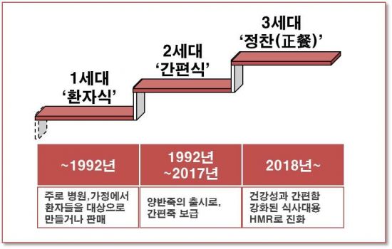 [아시아경제 이선애 기자] 동원F&B가 시장 확대를 통해 오는 2020년 국내 상품죽 1위 양반죽을 연매출 2000억원 브랜드로 키울 계획이다. 이를 위해 최근 3000평 규모의 양반죽 전용 생산시설을 광주에 준공 했으며 품질 및 패키지, 디자인을 한층 업그레이드했다. 동원F&B는 하반기 내에 시니어 타겟 죽, 프리미엄 죽, 브런치 스프 등 다양한 맞춤형 카테고리 제품을 선보이고, 국내 상품죽 시장을 기존 2세대 간편식 에서 3세대 정찬(正餐) 개념으로 발전시켜 나갈 예정이다.11일 동원F&B에 따르면 최근 가정간편식(HMR) 트렌드와 함께 상품죽 1등 브랜드인 양반죽의 매출 역시 최근 3년 연평균 20% 정도의 큰 폭으로 성장하고 있다. 동원F&B는 1992년 ‘양반 참치죽’을 선보이며 국내 최초로 상품죽 시장을 열었다. 참치 가공 노하우와 통조림 기술을 접목해 우리나라 전통식품인 죽을 간편식 형태로 출시한 것이다. 이전까지 죽 시장은 가정이나 병원, 전통시장, 식당 등에서 주로 환자들을 대상으로 만들고 판매하는 환자식 개념이었다. 1992년 양반죽이 출시되면서 이러한 1세대 죽 시장의 패러다임이 상품형태의 2세대 간편식 시장으로 전환됐다. 동원F&B는 이후 야채죽, 전복죽, 쇠고기죽 등 다양한 죽을 출시했다.양반죽.