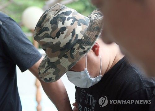 10일 오후 9살 여자아이를 납치한 혐의를 받는 A(27) 씨가 경남 밀양경찰서로 압송되고 있다.사진=연합뉴스