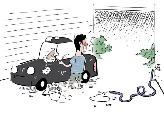 세차하는데 비가 오는군요. 일이 잘 풀리지 않고 꼬이기만 할 때 사람들은 '머피의 법칙'이라고 현상을 표현합니다.[그림=아시아경제 오성수 화백]